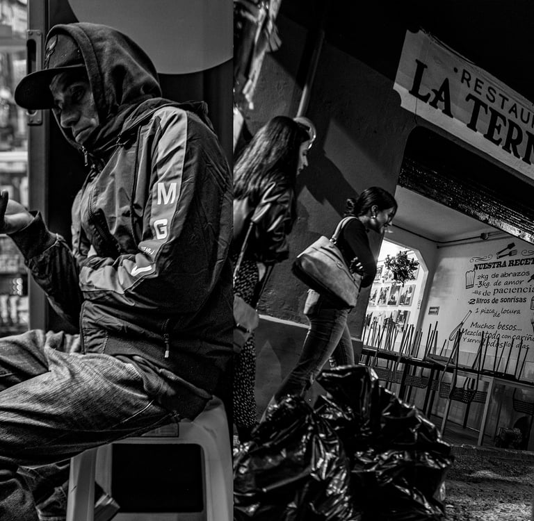 El desprendimiento de la conciencia en los transes entre un estadio y otro se plasma en el registro de un paisaje dinámico como el que uno contempla desde la ventana de un vehículo en movimiento.
